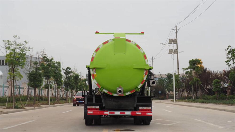 5.液壓舉升自卸功能,便于將各種污物傾倒干凈,后罐門可以液壓啟動開啟,便于清理罐體內的沉積物,凝固物及對罐體內部進行維修、保養,液壓取力增強了系統的穩定性。