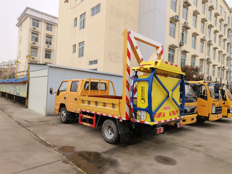 上裝配置:防撞緩沖車尾部設(shè)置防撞緩沖塊,防撞緩沖塊采用液壓升降裝置,還配備車載一體化的電子屏、電子箭頭標志牌、頻閃燈及爆閃燈多種**示燈,能夠為后方車輛提供**示和指示方向。箭頭指示標志可對左、右及禁止通行進行導(dǎo)向指示,對道路車輛提供主動安全引導(dǎo)和安全**示,**大限度降低施工對**流量的影響并確保安全。尾部升降和燈具采用遙控**,可在車輛附近安全**防撞緩沖塊的升降和**示燈的開關(guān)。