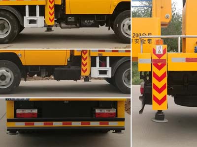 后伸:300mm;隨底盤選裝駕駛室;選裝吊鉤;側(cè)面防護及后下部防護裝置材料材質(zhì):Q235,連接方式:焊接加螺栓連接;后下部防護裝置斷面尺寸(寬贅?:30?00(mm),離地高度:350mm;ABS廠家及型號:襄陽東風(fēng)隆誠機械有限責(zé)任公司/ABS/ASR-24V-4S/4M;主要專用裝置為折疊臂,用于搶修電力、通訊、路燈等高空作業(yè).
