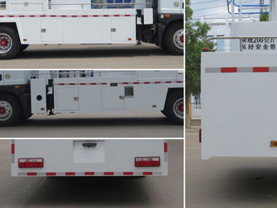 配置 前伸:30mm;僅采用5200mm軸距;隨底盤選裝駕駛室;側面防護及后下部防護裝置材料材質:Q235,整體式結構,后下部防護裝置離地高度:480mm;ABS系統生產廠家,型號 :焦作博瑞克**技術有限公司,J ABS;主要專用裝置為折疊臂,用于搶修電力、通訊、路燈等高空作業.